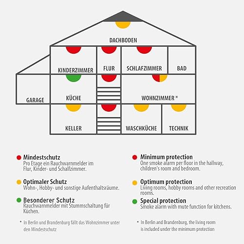 Brennenstuhl Rauchmelder RM L 3100 mit integrierter Batterie (Rauchwarnmelder geprüft und Zertifiziert nach VDs DIN EN 14604) weiß