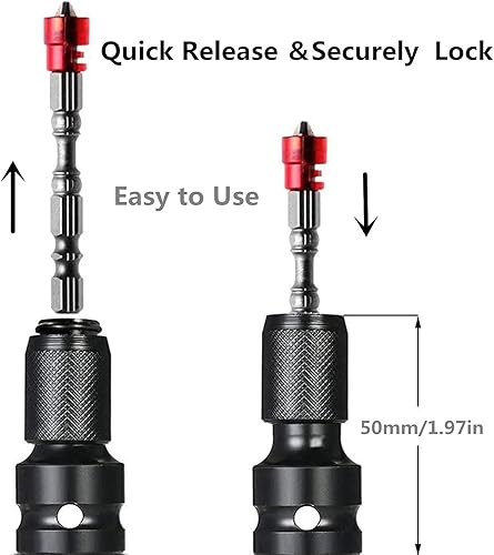 Pomlink Stecknuss-Adapter 1/2-Zoll-Vierkantantantrieb (1,3 cm) auf 1/4-Zoll-Sechskantschaft (0,6 cm) Schnellspann-Konverter für Schlagratschenschlüssel und Schraubendreher-Bit-Halter