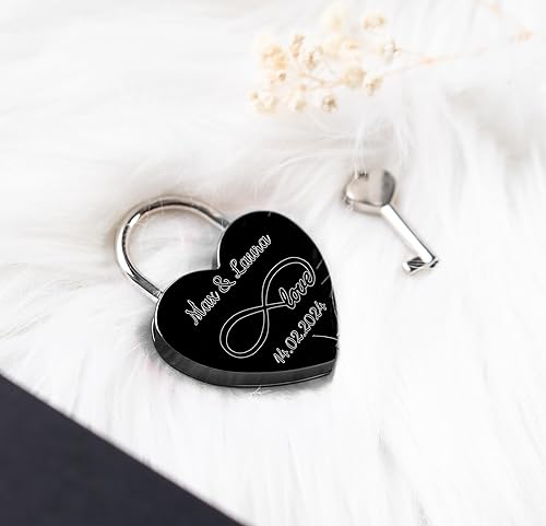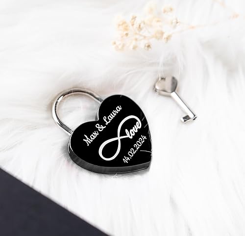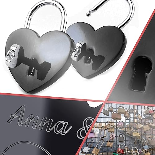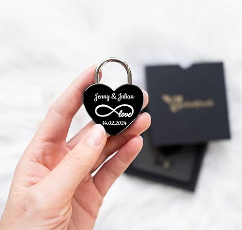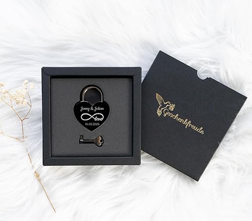 Geschenkfreude Liebesschloss mit Gravur witterungsbeständig - Valentinstags Geschenk für Sie oder Ihn - personalisierte Partner Geschenke für Paare - Pärchengeschenk - Schloss mit Gravur black