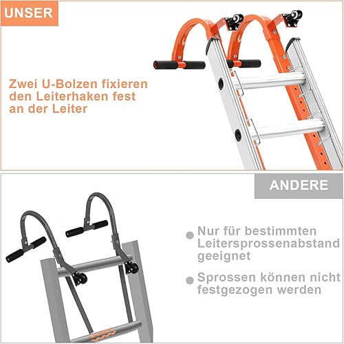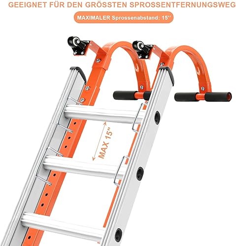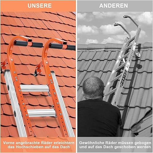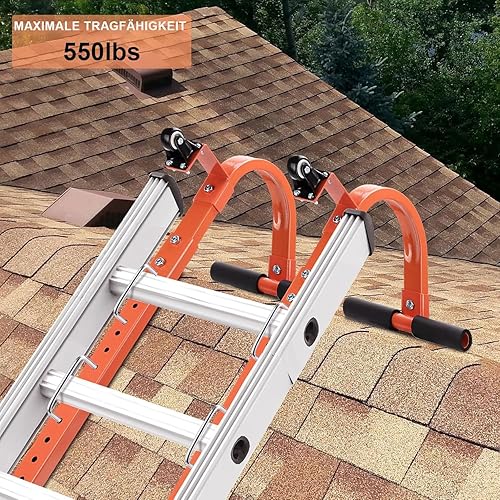 2-teiliger Leiterstabilisator, robuster Stahlleiter-Dachhaken mit Rädern, Gummigriff-T-Stange zur Schadensverhütung, Leiterzubehör, leicht zugängliche steile Dächer