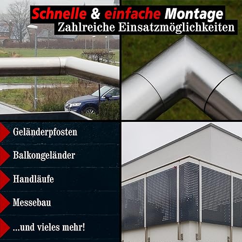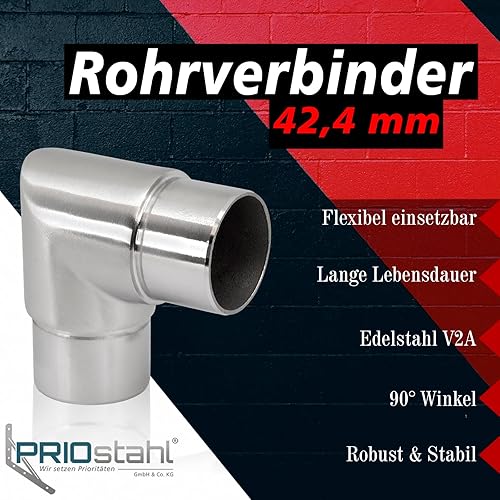 PRIOstahl Rundbogen Rohrbogen Bogen Rohrverbinder Steckfitting Verbinder Rund - 4 Stück Ø 42,4 mm für Rundrohre Rohr Handlauf Verbindung zum Stecken Geländerbau Rostfrei aus Edelstahl V2A