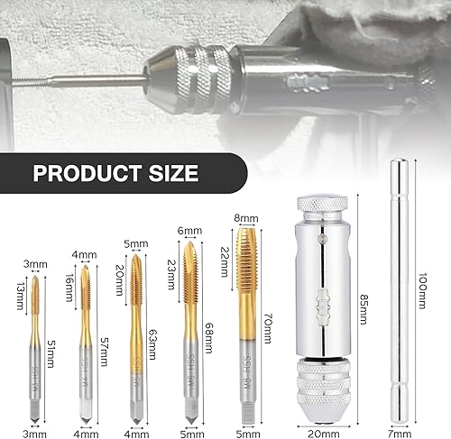Habwea 5 Stück Gewindebohrer Set, M3 M4 M5 M6 M8 HSS Gewindefräsen T -Griff Ratsche Gewindeschneider Halterschlüssel (Tap Wrench Set-Golden)