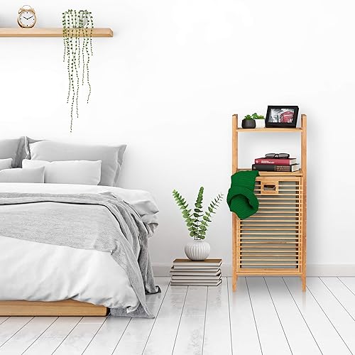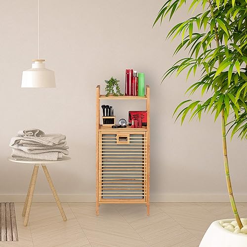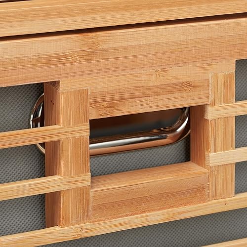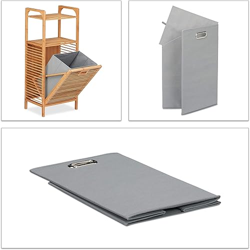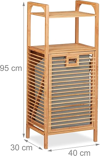 Relaxdays Badregal mit Wäschekorb, herausnehmbare Faltbox aus Stoff, Regal aus Bambus, HBT 95 x 40 x 30 cm, natur/grau