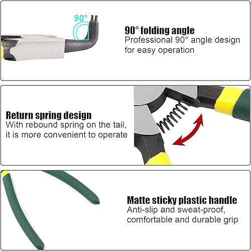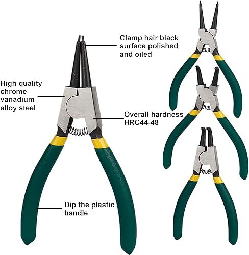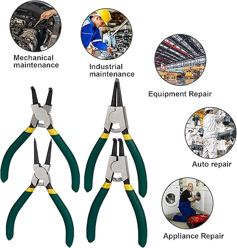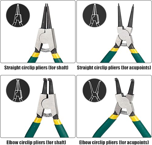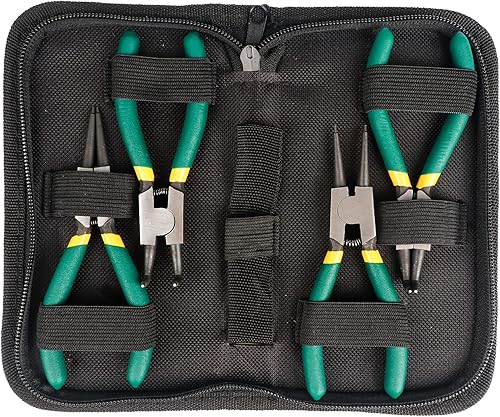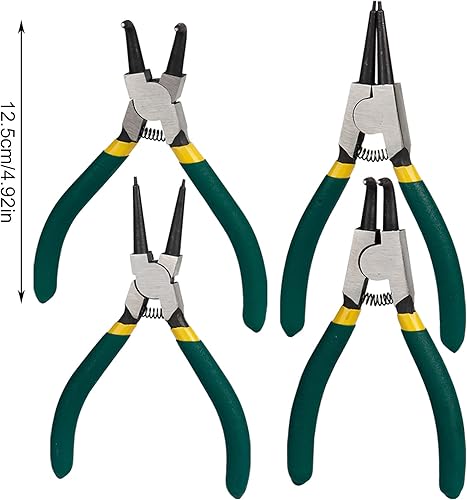 Gobesty Sprengringzangen Set, 4 Stück 125mm Sprengringzange Rutschhemmend Sicherungsringzange mit Taschen, Grün Gebogen/Gerade Seegeringzange Innen/Außen