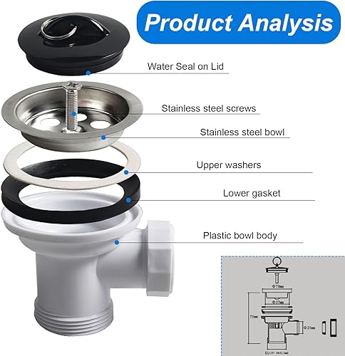JPGhaha Siebkörbchen Spüle Ø70mm Anschluss Rund Siebkorbventil Körbchenventil mit Spülenstecker Ablaufventil Waschbecken Ablaufgarnitur