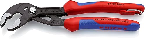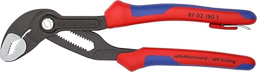 KNIPEX Cobra Hightech-Wasserpumpenzange mit Mehrkomponenten-Hüllen, mit integrierter Befestigungsöse zum Anbringen einer Absturzsicherung grau atramentiert 180 mm 87 02 180 T