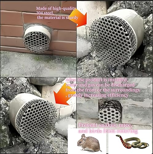 Regenrinnen-Downsport-Schutz, 9 cm, Edelstahl-Filter, Dachrinnen-Fallauslaufschutz zur Verhinderung von Verstopfung, Blättern, verhindert, dass Schlangen, Mäuse und Vögel durch Rohre in das Haus
