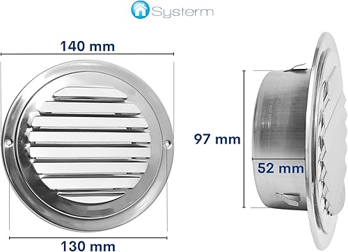 SYSTERM Lamellengitter Edelstahl poliert Wetterschutzgitter Lüftungsgitter DN - (100mm)