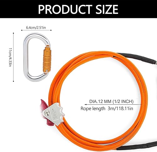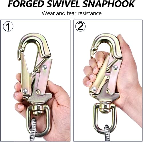 Fallschutz, Klettergurt, Stahlseilkern-Flip-Line-Kits, 12mm*3m Stahlkern Lanyard mit Triple Lock-Karabiner,Drahtkern Stahldraht Verstellbares Lanyard,für Baumkletterer,Baumpfleger,Absturzsicherung