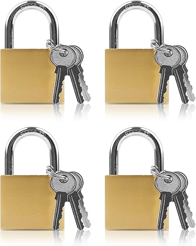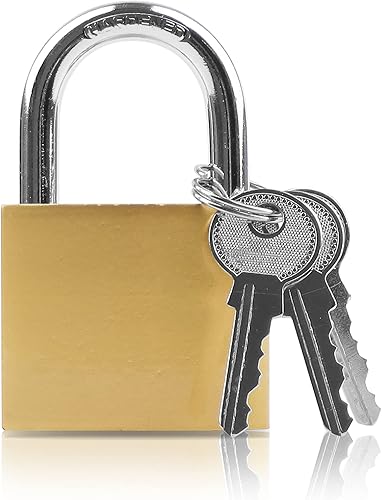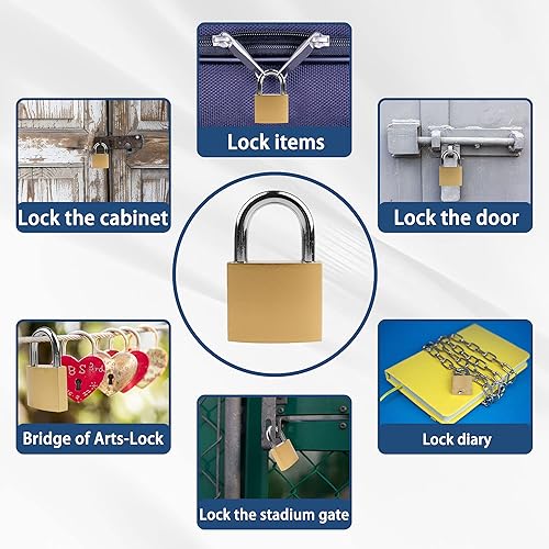 Lamondre Vorhängeschloss 32mm, 2 Stück Schloss mit schlüssel, vorhängeschloss klein, Vorhangschloss mit schlüssel für Koffer, Schränke, Fitnessstudio-Schließfächer, Spinde, Werkzeugkisten, Gold