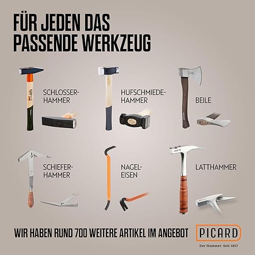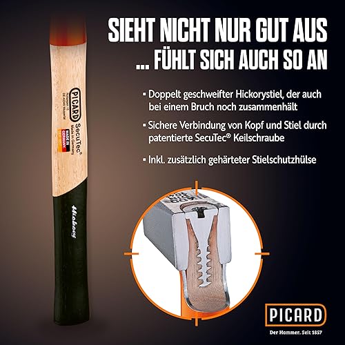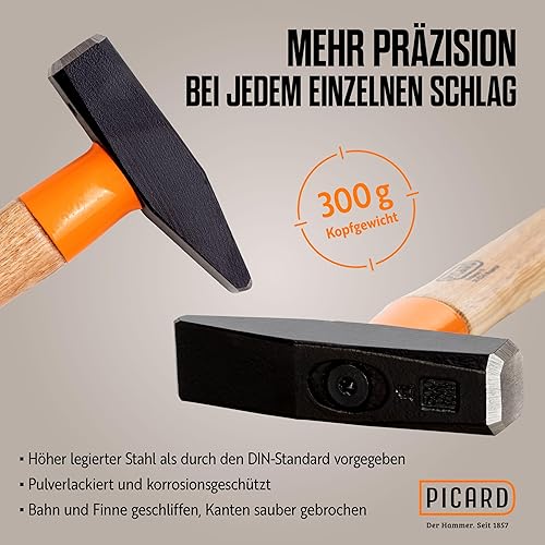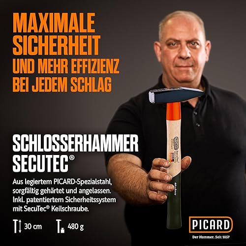 PICARD Schlosserhammer SecuTec Nr. 12 HS 300g | Deutsche Qualität | Ergonomischer Hickorystiel | Ideal für Industrie & Baustelle | DIN 1041 Zertifiziert | Made in Germany seit 1857