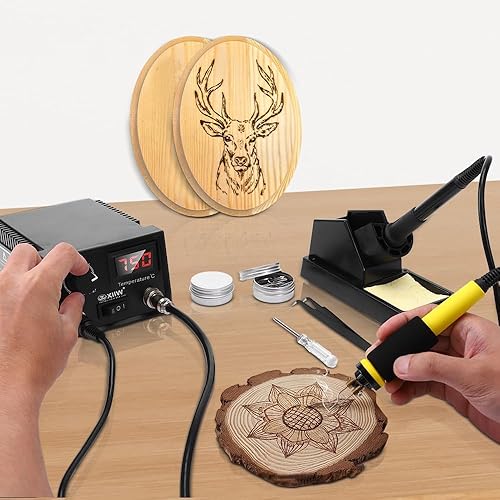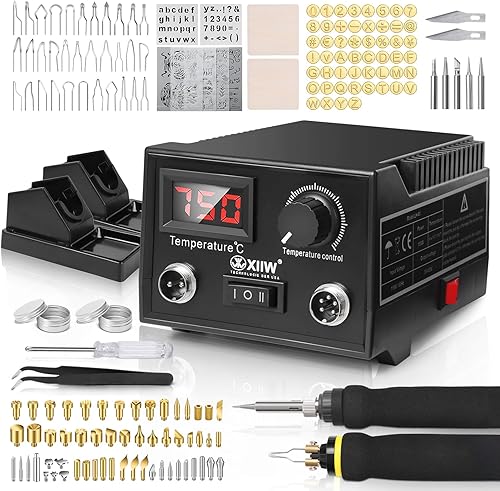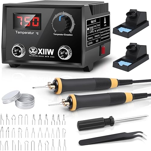 Brandmalerei 100W mit 23-teilig Spitz und zwei Stiften, Holzbrenner Brennkolben Set, Temperatur Einstellbar 0-750°C, Brandmalstation Brandmalkolben Brandmalgeräte für Holz, Leder und Kork