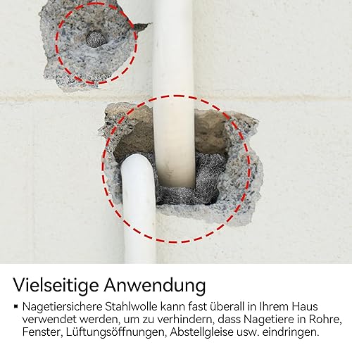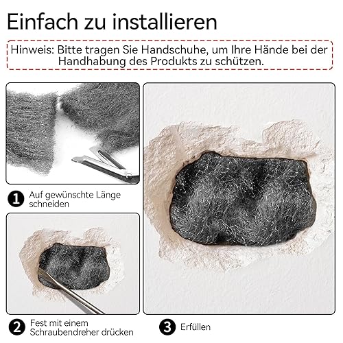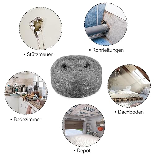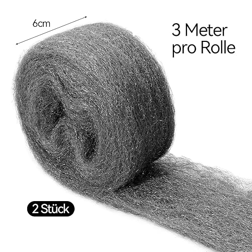Brelet 2 Rollen Stahlwolle Mäuse mit Schere,6m Wirksam Stahlwolle Gegen Mäuse Füllt Löcher und Wand Risse für Haus Garage und Garten