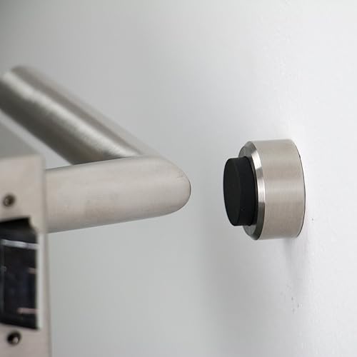 Stoppwerk Türstopper Wand - Klinke Wandschutz in Edelstahl mit Gummi Puffer - Wandtürstopper inkl. Material für Wandmontage - Ø3,2cm H:2cm