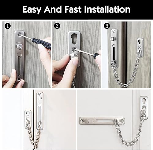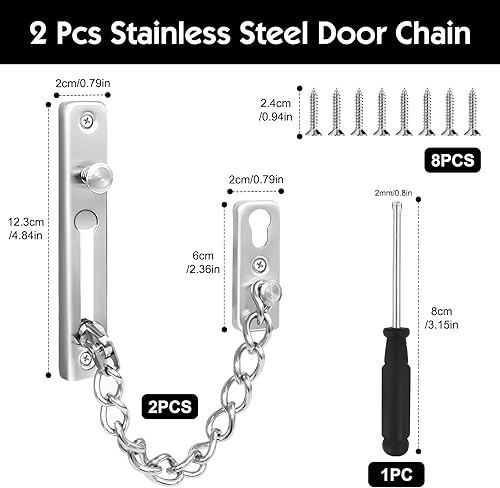 Bohoray 2 Stücke Edelstahl Türkette, Silbrig Türsicherheitskette mit 1 Schraubendreher, Innen Türkette Haustür, Türen Sicherheitskette für Haus, Hotel, Innentüren und Fenster