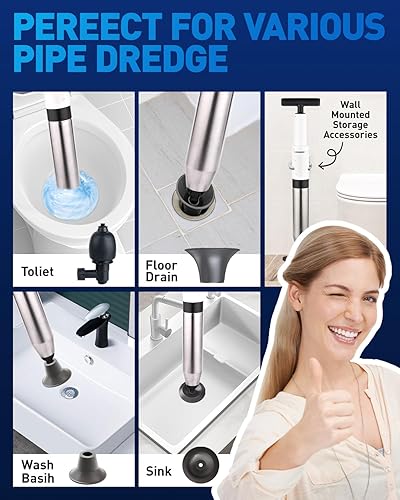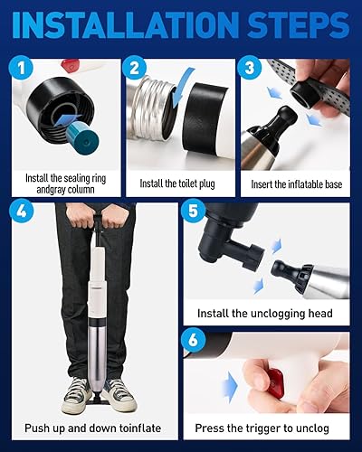 Aufblasbarer Toilettenkolben, Toiletten Pömpel, Plunger, Toilettenkolben, Toilettenkolben-Verstopfungsentferner, High Pressure Air Drain Blaster, für Waschbecken, Toiletten, Badezimmer,Dusche(Schwarz)