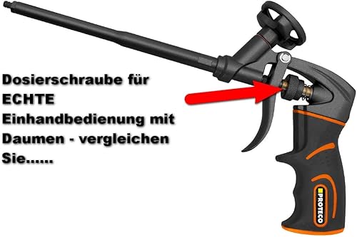 Proteco-Werkzeug® PU-Schaumpistole PTFE antihaft beschichtet Profi-Qualität Montagepistole Einhandbedienung Softgrip