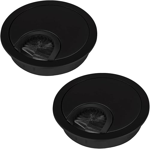 SOTECH 2 Stück Kabeldurchlass Metall Bohrmaß Ø 68 mm schwarz matt mit Bürstendichtung Kabeldurchführung Außen-Ø 76 mm