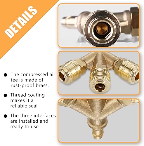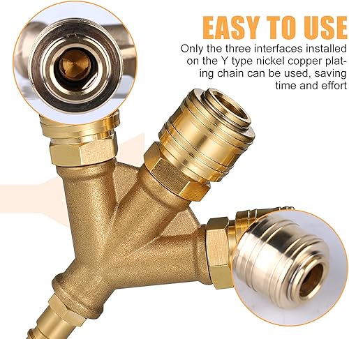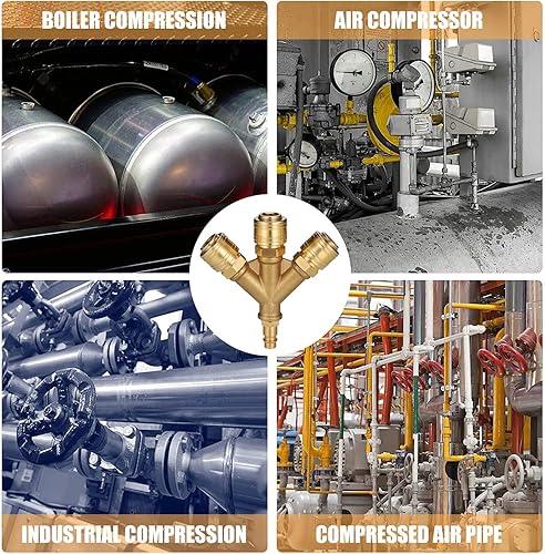Druckluftverteiler 3-Fach mit Kupplungen, 1/4-Zoll Verteiler Luftverteiler 3 Druckluftweiche mit Außengewinde, Messing Kupplungsstecker mit Kupplungsdosen NW 7,2 Luftweiche Y Verteiler
