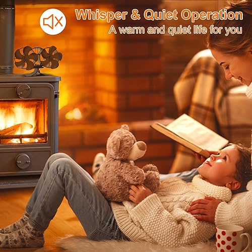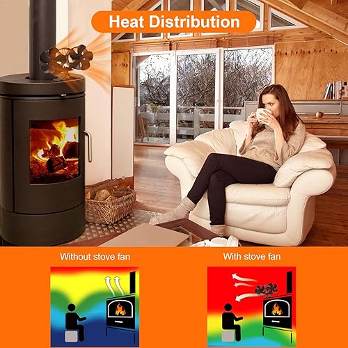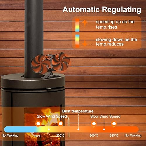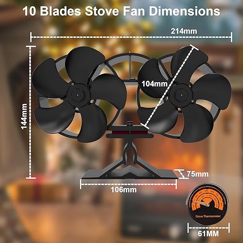 weareok Ofenventilator Kamin Ventilator Kaminventilator Kaminbesteck Lüfter für Kaminofen Holzofen Pelletofen ohne strom Leiser Betrieb mit Thermometer Wärmebetriebener Ventilator (Doppelköpfig)