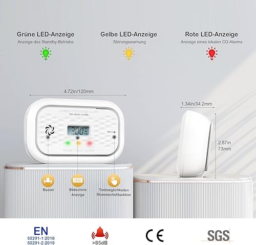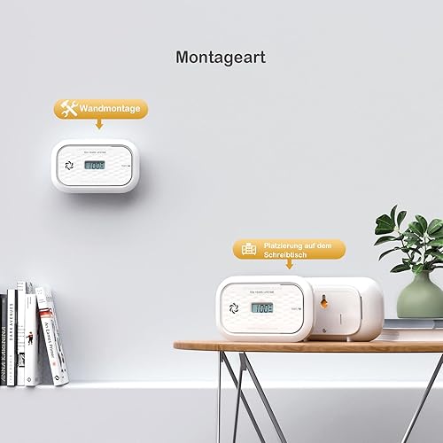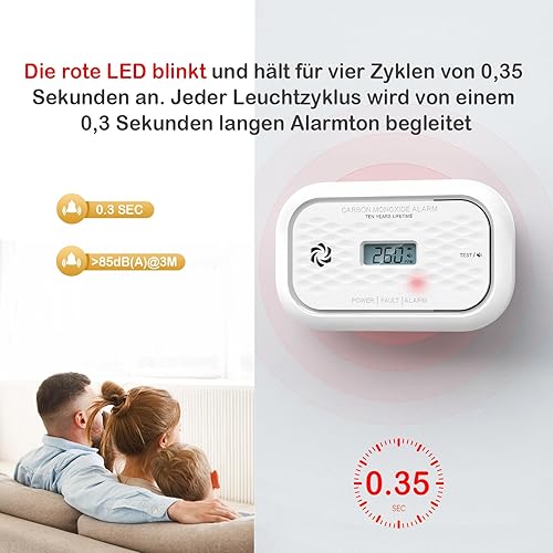 Andyssey ZA326 H01 Kohlenmonoxid Melder 10 Jahre Batterie, Tragbarer CO Detektor mit LCD Display, Zertifiziert EN 50291, 85 dB Alarmlautstärke, 1 Stück