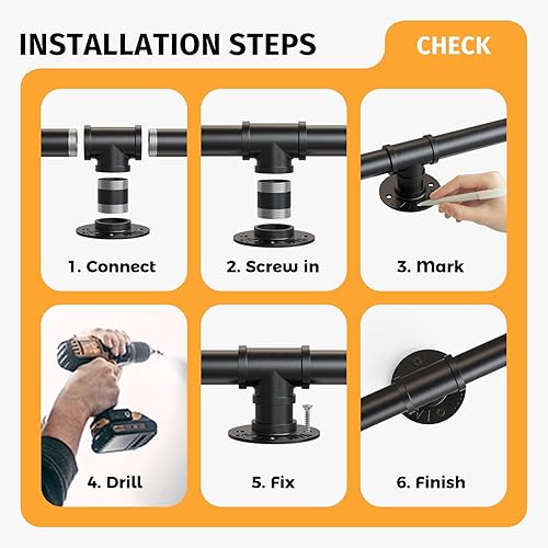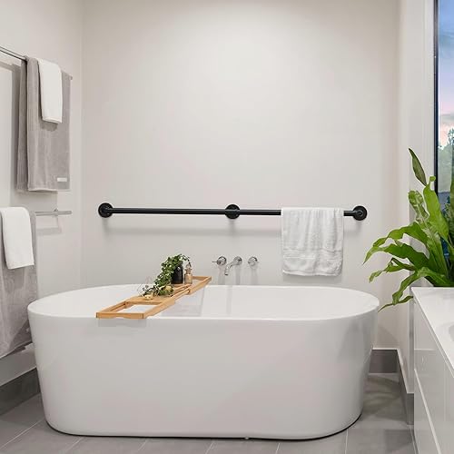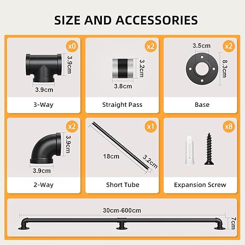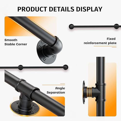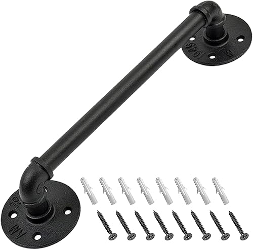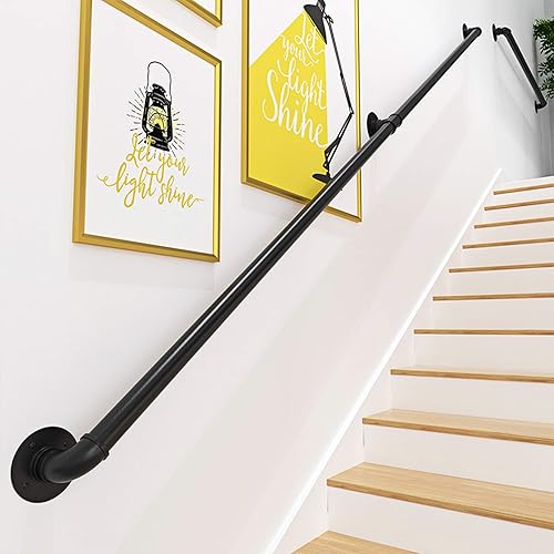 Gorssen Handlauf für Treppen Innen Aussen Haltegriffe Rohrförmiges Handfußgeländer Sicherheitsgeländer Türgriff Treppengeländer Halter mit Halterungen - Komplettset - Schwarz,30cm