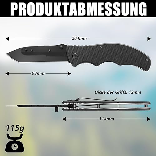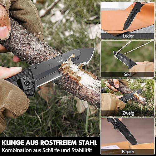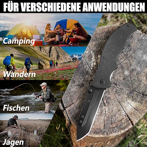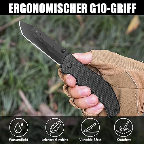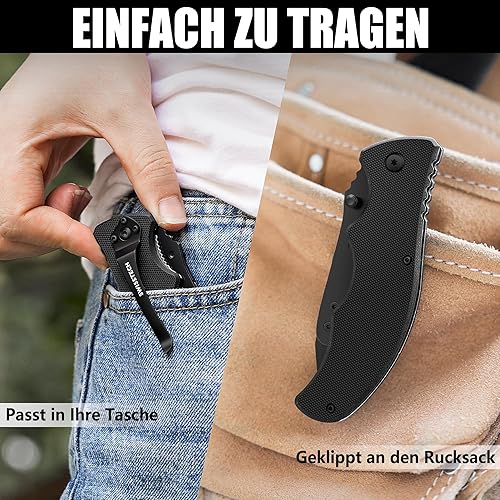 Swiss+Tech Taschenmesser, Klappmesser, Abgenutzter Stil, mit G10 Griff, Jagdmesser mit Taschenclip, Outdoor Messer für Camping, Jagd und Wandern, Schwarz