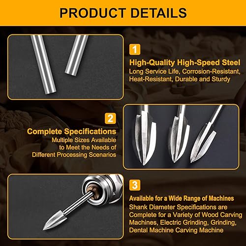 Drechselbank Für Holz, 7 Stück Hss Gravierwerkzeug, Holz Fräser Set Mit 6mm Universal-Schaft Für Holzbearbeitung Gravieren Schnitzen Bohren Schleifen, Für Rotierende Werkzeuge 3/4/5/6/8/10/12mm