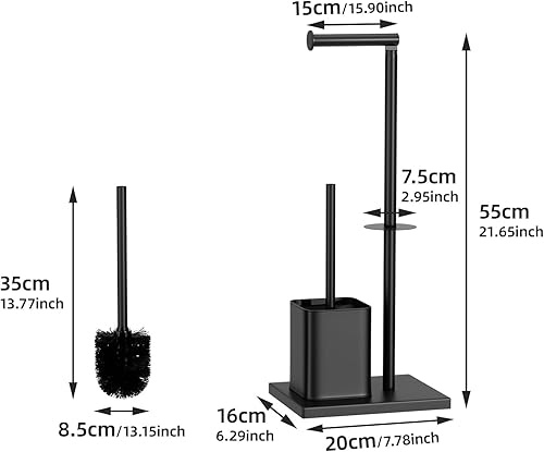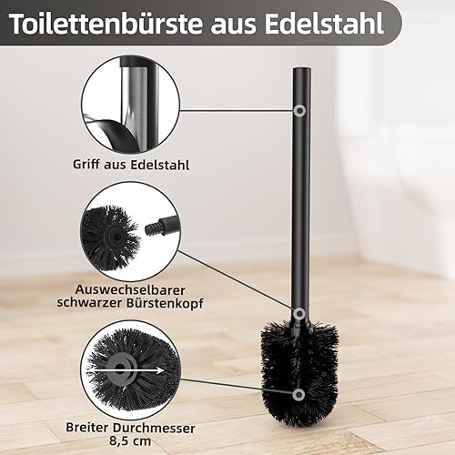 Edelstahl Klopapierhalter mit Klobürste - mit WC Bürste, Garnitur mit Toilettenpapierhalter und Toilettenbürste, Klorollenhalter Stehend (Schwarz Matt)