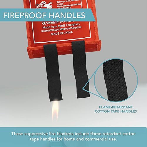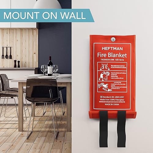 HEFTMAN Löschdecke 2er Pack - Große Glasfaser Feuerlöschdecke mit Flammhemmenden Baumwollgriffen in Rotem Etui - Feuerdecke für Küche, Zuhause, Wohnwagen (1 m x 1 m) - 2 Stück