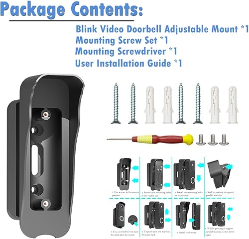 Blink Türklingelhalterung von IRONA, verstellbarer Engel (bis zu 110 Grad Neigung), Anti-Diebstahl-Design, wasserdichte Halterung für Blink Video Türklingel, einfache Installation, Schwarz