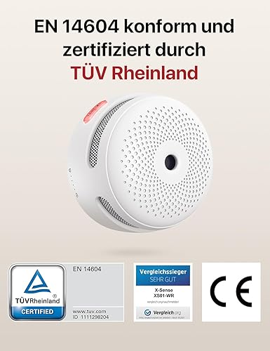 X-Sense Funkvernetzbarer Rauchmelder XS01-WR, vernetzter Rauchwarnmelder mit 250 Meter Reichweite, Feuermelder mit austauschbarer Batterie, 6er Set