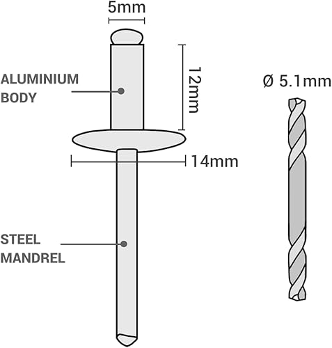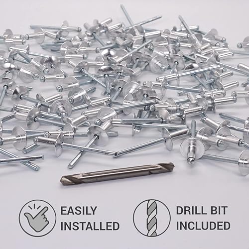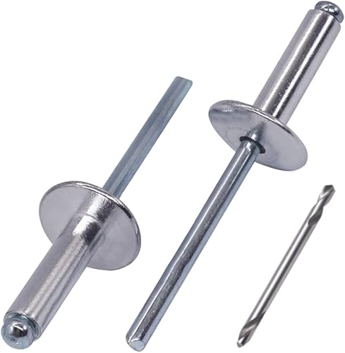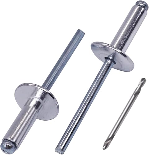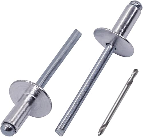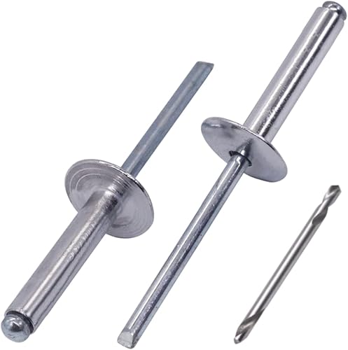 SKIR'CO (30 Stück) Großer Flansch Aluminium Blindnieten 5,0 x 30 mm, Stahldorn, Bohrer enthalten