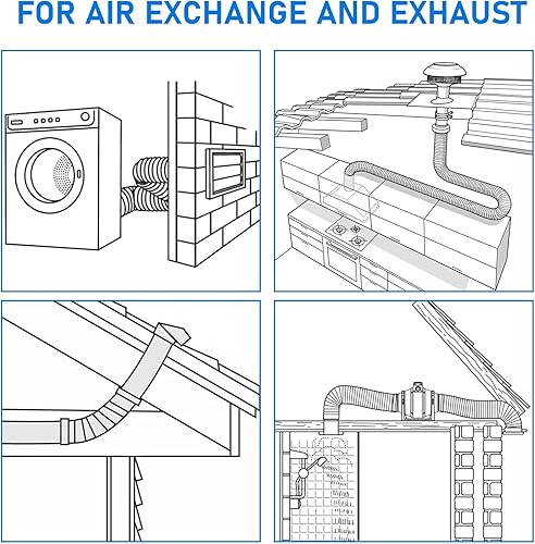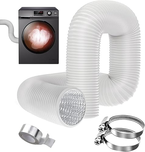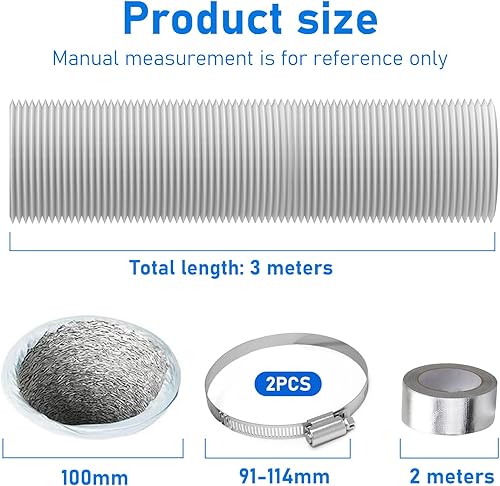 YSOOUA Abluftschlauch 100mm Alu Flexrohr Länge 5m Flexibel PVC Alurohr Schlauch Aluminium Aluflexschlauch Ø100mm mit 2 Schlauchschelle Edelstahl für Klimaanlagen Wäschetrockner Abzugshaube