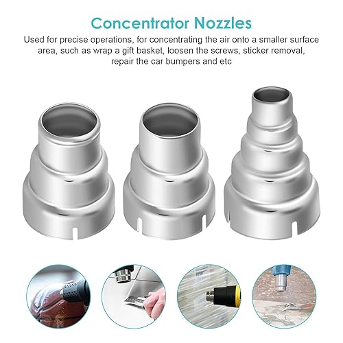 7Pcs Heißluftpistolen Düsen Kit, Düsenset Steinel Heissluftpistole Aufsatz Düsen Heißluftdüse Ersatz Edelstahl Heißluft Lötstation für 1500-2000W 35-40mm Heißluftpistole