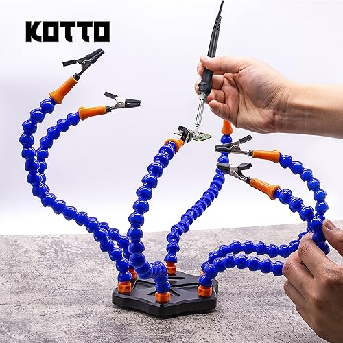KOTTO Dritte Hand Löthilfe Third Hand Löten Magnetisch Leiterplattenhalter Werkzeug Zwei Arme Helfen Hände Handwerk Werkstatt Helfen Station Rutschfeste Aluminiumbasis Drahtschneider Zange