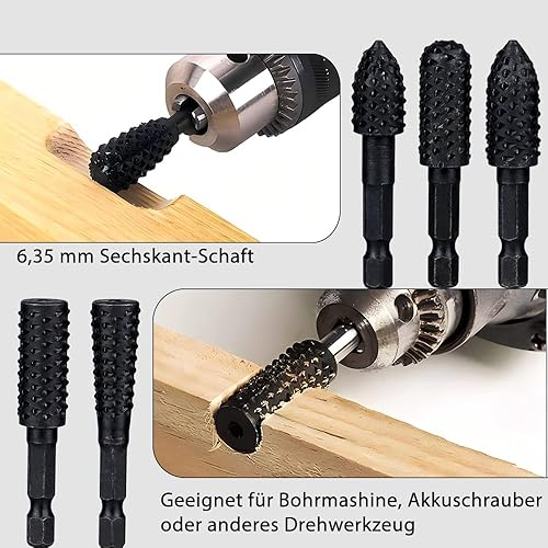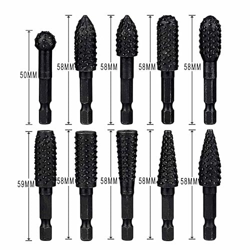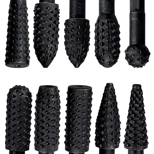 Treki 10 Stück Stubby Holzraspel Raspel Set mit 6,35mm Hex Schaft Fräser Holzraspel für Bohrmaschine, Profilraspel für Holz Fräsaufsatz Holzfräser für Bohrmaschine zum Schnitzen Gravieren
