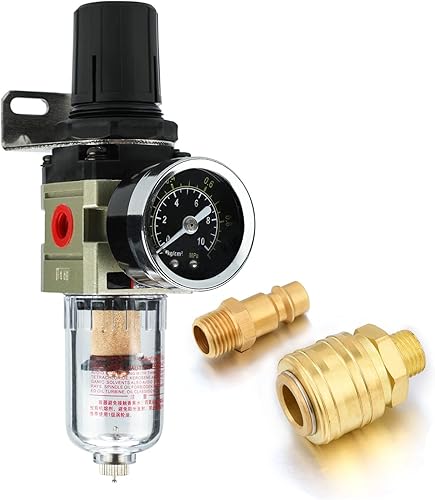 Wasserabscheider Druckminderer Druckluftregler für Druckluftkompressor, 1/4 Zoll Filter mit Schnellkupplung