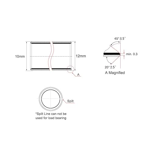 sourcing map Hülsenlager 10mm Bohrung x 12mm Außendurchmesser x 20mm Länge Gleitlager gewickelt ölfreie Buchsen 10 Stück