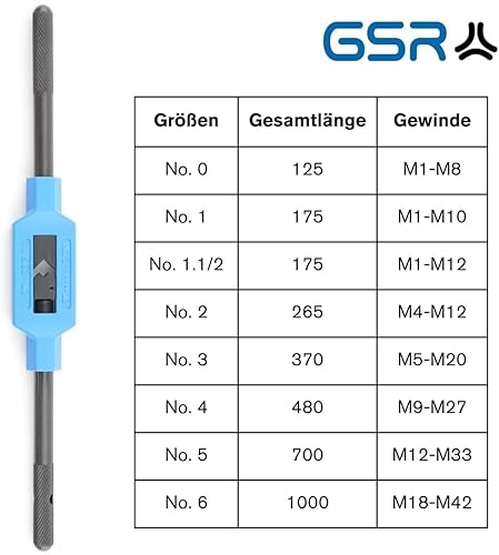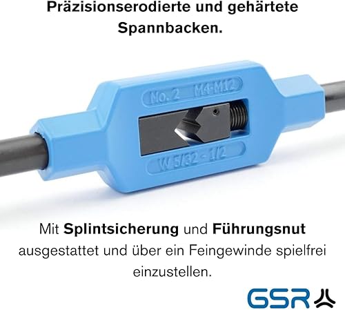 GSR Silver Windeisen DIN 1814 verstellbar, Handgewindebohrer (Gr.1.1/2 | M1 - M12), Spannbacken aus Werkzeug-Stahl, Vierkant-Aufnahme, Gewindeschneider Set Zubehör