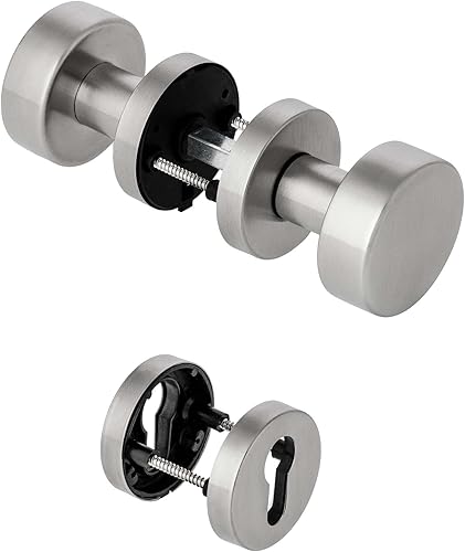 ck-türbeschläge 1 Paar drehbare Knäufe | V2A Edelstahl matt | inkl. PZ-Rosetten | für Innen- und Außenbereich (Zylindrischer Knauf)