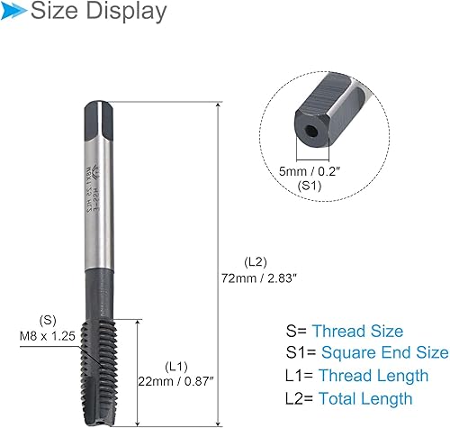CoCud Spiral-Punkt-Gewindebohrer, Gewindegröße M8X1.25, TICN-beschichteter HSS-Metrischer Gewindebohrer - (Anwendungen: zum Bohren und Gewindeschneiden von Edelstahl), 2 Stück