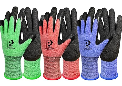 PROGANDA 3 Paar Gartenhandschuhe für Damen Herren Latex beschichtet Arbeitshandschuhe Griff Atmungsaktiv Bequem für Mehrzweck