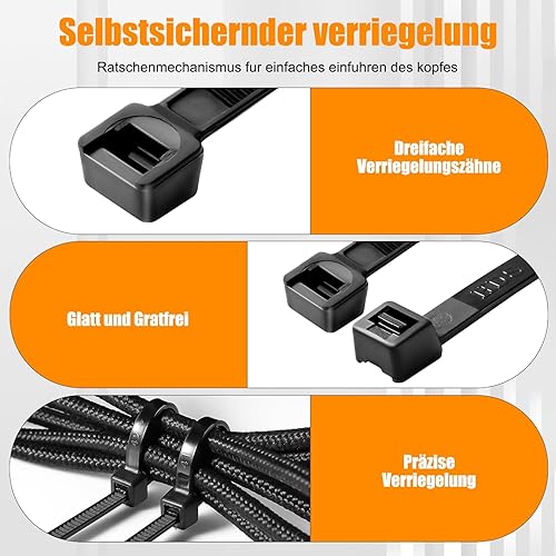 Honyear 1000 Stück Kabelbinder Schwarz 100/150/200/250/300mm Und 20 Klebesockel, Kabelbinder set, UV Beständig, Hitzebeständig, Kunststoff Kabel Binder Set