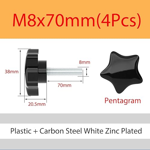 MOOPW M8 x 80mm 4 Stk Stern Rändelschrauben Kohlenstoffstahl Knopf Handhaben Klemmung Schrauben Plastik Griff Maschine Klemmgriff