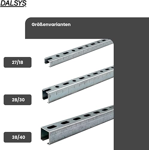Dalsys Montageschiene 27/18, Schienenkonsole Silber 200cm, 1 Stück, Lochschiene, C-Profilschiene, U-Schiene, u.a. zur Bildung von Traversen
