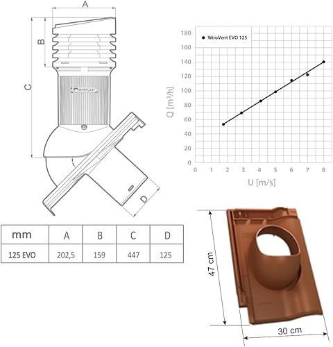 Entlüfterkamin Tile EVO DN125 für Braas - RUBIN 9V Dachziegel Dachlüfter Lüfter 9 V (RAL8004 - Ziegelrot)