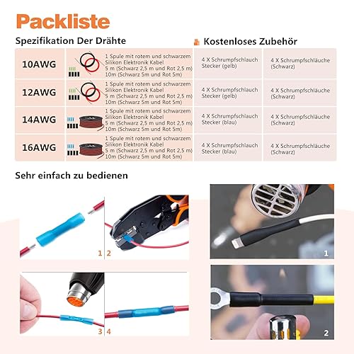 0,2mm² Silikon Elektrokabel-SCHDRA 24 AWG verzinnte Kupferdrahtspule,6 Farben,9 Meter pro Kabel,Litzendraht,flexibel und weich, ideal für elektrische Anwendungen