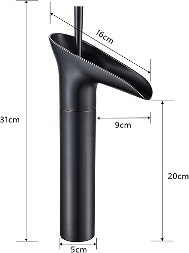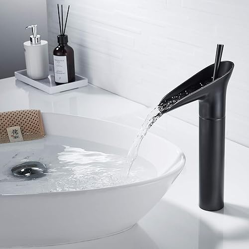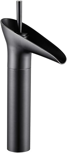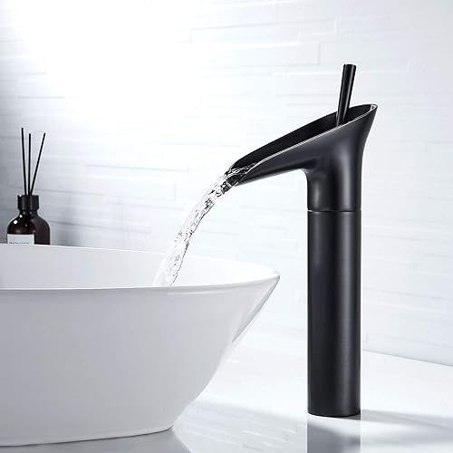 Wasserhahn Bad Schwarz Matt, Bevankly Wasserfall Waschtischarmatur Retro Schwarz Armatur Bad Hoch, Einhebel Waschbecken Armatur Badarmatur aus Messing für Badezimmer, Schwarz Matt, G3/8