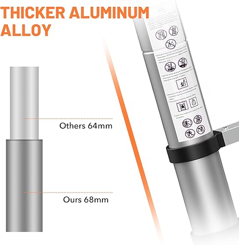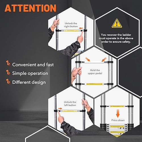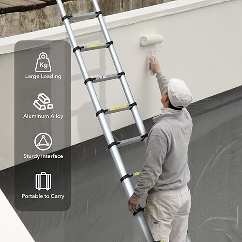 FEETE 3.8m Teleskopleiter, Aluminium-Leichtbau-Ausziehleiter mit rutschfesten Füßen, tragbare Dachbodenleiter, Heavy Duty RV zusammenklappbare Leiter für RV, Haushalt, Outdoor-Arbeiten(3.8M)